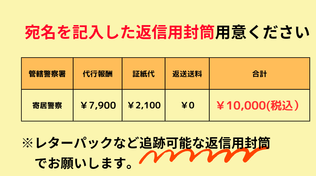 - 寄居警察への再訪問が必要な不備が発生したときの追加料金:¥2,000