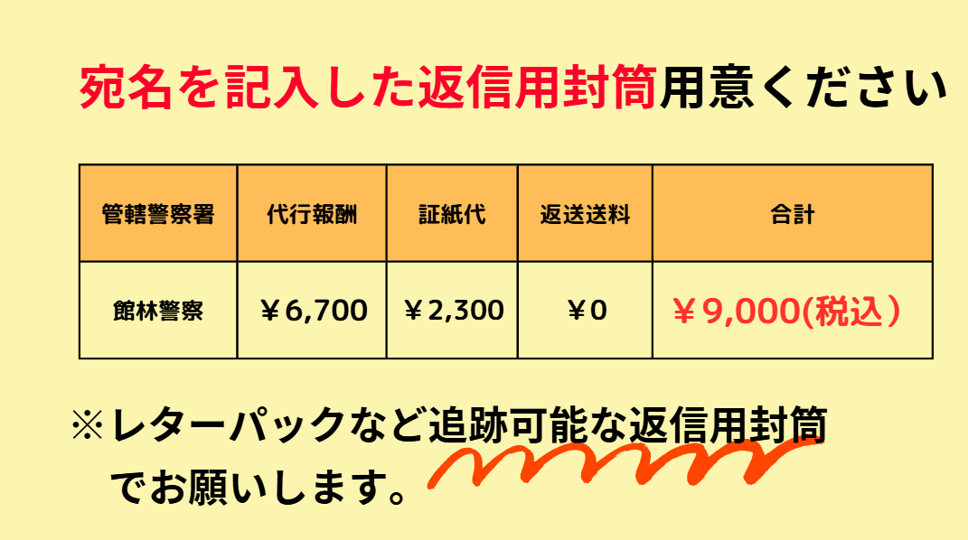 館林警察署から不備・補正が指摘され、修正する場合に必要になる場合がございます。